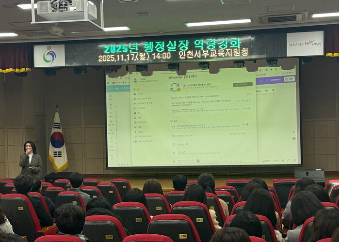 [인천=문찬식 기자] 인천서부교육지원청(교육장 임용렬)은 17일 관내 유·초·중학교 행정실장 80명을 대상으로 디지털 전환 시대에 필요한 행정 역량 강화 교육을 실시했다.
