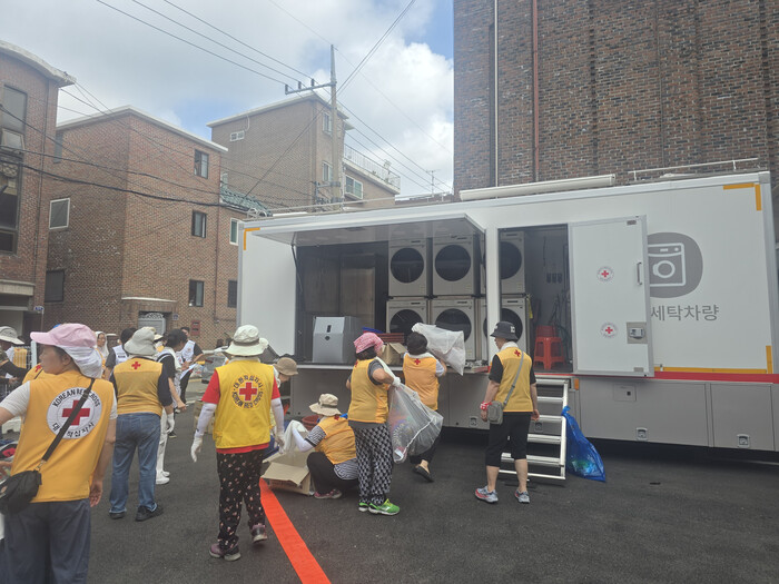 ▲ 지난해 수해복구 현장에서 활동중인 적십자사 모습.(사진=은평구청 제공)