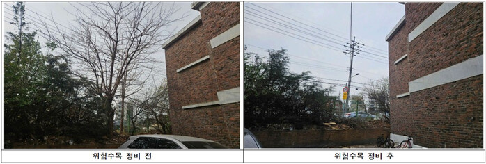 | ▲ 위험수목 정비 전후 모습. (사진=구로구청 제공) |