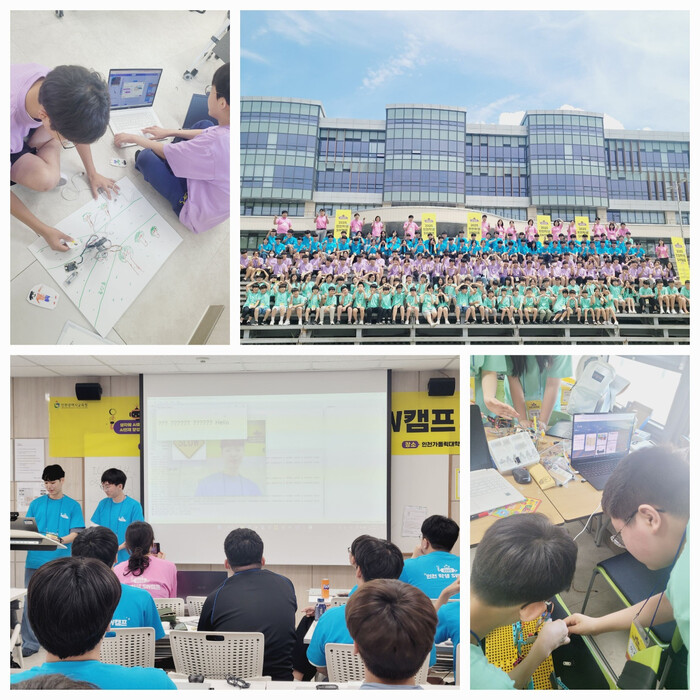 이번 캠프는 SW 기초 학습과 팀 프로젝트 수행으로, 학년별 수준에 맞춰 △초등학생은 마이크로비트 △중학생은 마이크로비트와 음성인식 모듈 △고등학생은 영상처리 모듈(OpenCV, MediaPipe) 등을 활용한 신체 인식 기반 게임 개발 실습을 실시했다. 이와 함께 팀별 주제를 선정해 프로젝트를 기획‧제작하고 결과물을 발표하는 시간을 가졌다.
