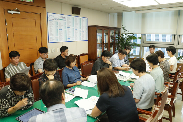 | ▲ 7월 14일 개최된 성동구 민생회복 소비쿠폰 TF 대책회의 모습. (사진=성동구청 제공) |