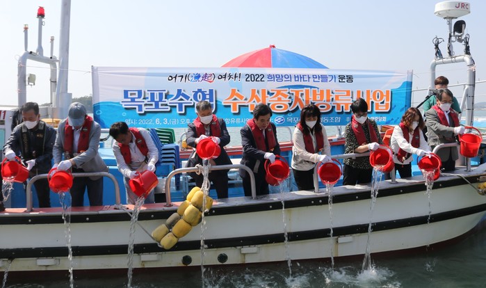 | ▲ 목포수협에서 어류 종자 방류 행사를 열었다(출처=목포수협) |