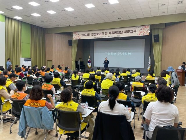 [시민일보 = 박소진 기자] 서울 서초구(구청장 전성수)가 지난 7일 구청 2층 대강당에서 110여명의 서초구 안전보안관 및 자율방재단을 대상으로 재난 대처능력 향상을 위한 직무 교육을 진행했다고 8일 밝혔다.