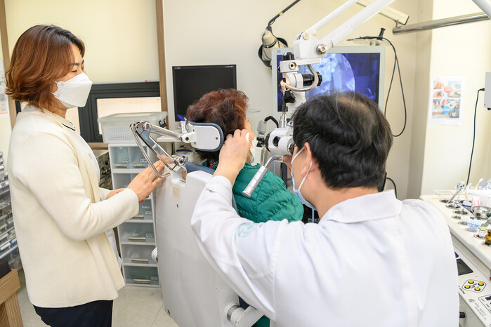 | ▲ 양천구 공항소음피해지역 주민에 청력(정밀)검사를 진행 중인 모습. (사진=양천구청 제공) |
