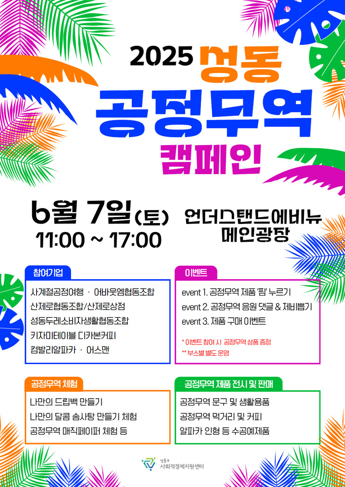 [시민일보 = 박소진 기자] 성동구(구청장 정원오)가 최근 서울숲 언더스탠드에비뉴 메인광장에서 ‘2025 성동 공정무역 캠페인’을 개최했다고 밝혔다.