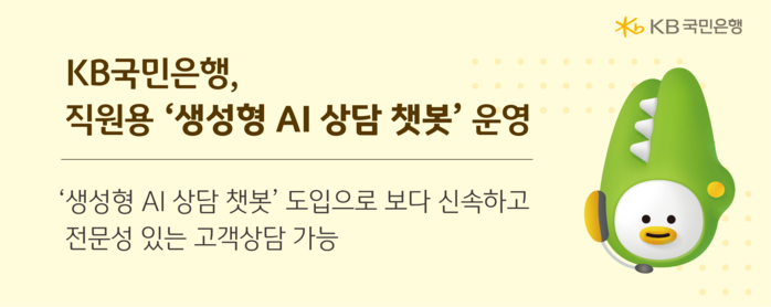 [시민일보 = 박소진 기자] KB국민은행이 직원들이 고객들과의 상담 과정에서 활용할 수 있는 ‘생성형 AI 상담 챗봇’ 운영을 개시했다.