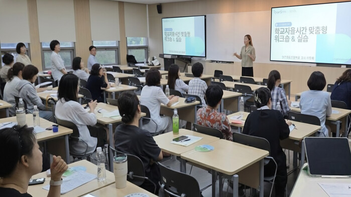 이번 연수는 2026학년도부터 5~6학년군에 학교자율시간을 편성할 초등학교 교사의 이해를 높이고, 학생 특성에 맞는 학습 경험을 제공하기 위한 ‘만들어 가는 교육과정’ 실현을 목표로 마련됐다.