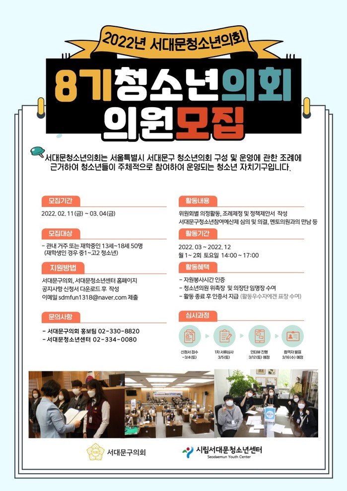 | ▲ 제8기 서대문청소년의회 의원 모집 안내문. (사진제공=서대문구의회) |