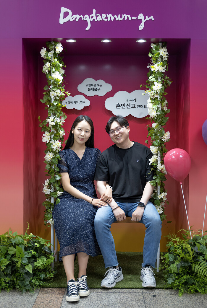 [시민일보 = 이대우 기자] 동대문구(구청장 이필형)가 혼인신고를 위해 구청을 찾는 신혼부부들을 위한 ‘혼인신고 인증 포토존’을 재운영한다.