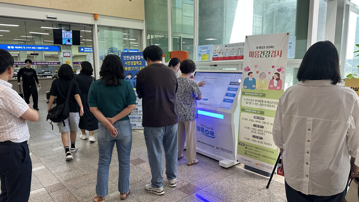 남동구청 민원실 입구에 설치된 ‘마음 건강 키오스크’는 누구나 무료로 이용할 수 있으며, 아동부터 노인까지 스트레스, 우울, 자살 위험도 등 총 22종의 정신건강 검사를 자가 진단할 수 있다.