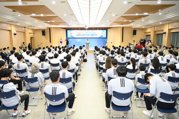 이번 결단식에서 김충섭 시장은 “그동안 대회 준비를 위해 힘든 훈련을 이겨내며 땀 흘린 선수들이 그동안 갈고닦은 실력을 마음껏 발휘하고 부상 없이 건강히 돌아오길 기원한다.”라고 전했다.