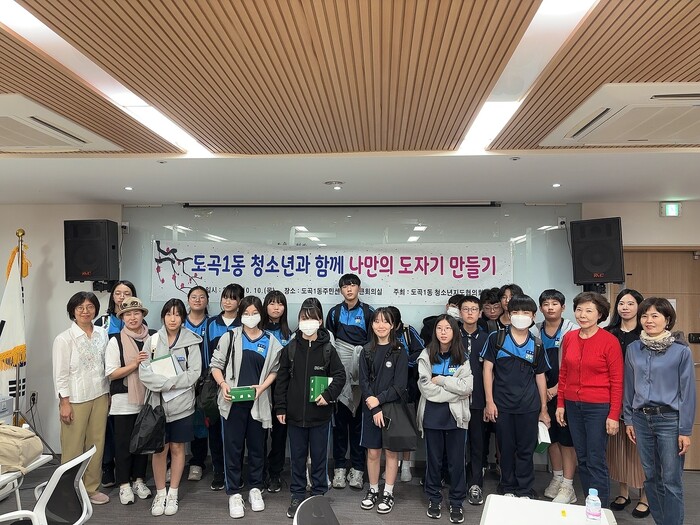[시민일보 = 이대우 기자] 꿈이 모이는 도시, 미래를 그리는 강남구(구청장 조성명) 도곡1동이 10일 도곡중학교 학생 21명과 ‘나만의 도자기 만들기’ 체험을 진행했다.