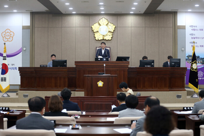 김기정 의장은 개회사를 통해 “이번 임시회에서는 현재 집행부에서 추진하고 있는 각종 시책과 사업에 대한 진행상황을 면밀히 파악하여 시 사업들이 성공적으로 추진되도록 점검할 것”이라며, “최근 자연재해 뿐만 아니라 잇따른 범죄 등 사회적 불안감이 고조되고 있는 것과 관련해 시는 전방위적 대응방안을 마련해 시민들이 안전한 일상을 누리도록 만전을 기해야 한다”고 강조했다.