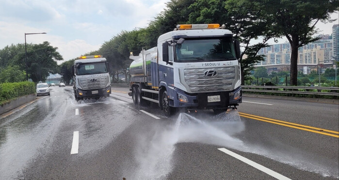 | ▲ 도로 물청소 운영 모습. (사진=성동구청 제공) |