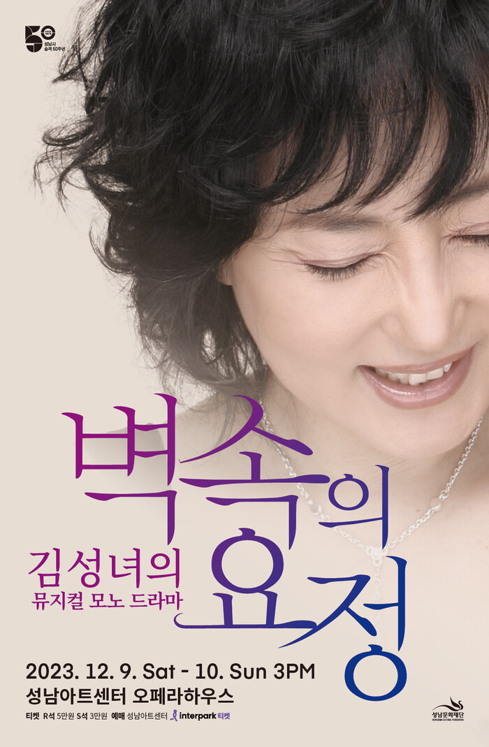 [성남=오왕석 기자] 성남문화재단(대표이사 서정림)이 배우 김성녀의 연기 내공을 엿볼 수 있는 뮤지컬 모노드라마 <벽 속의 요정>을 오는 12월 9일(토)과 10일(일) 양일간 성남아트센터 오페라하우스에서 공연한다.