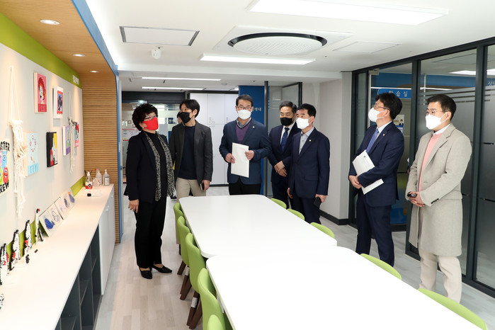 이어 지층~지상 2층으로 이뤄져▲청소년 공부방 ▲아동·가족상담센터 ▲주민카페 ▲장난감도서관 등이 조성된 시설을 둘러본 후 사무실을 방문해 직원들을 격려했다.