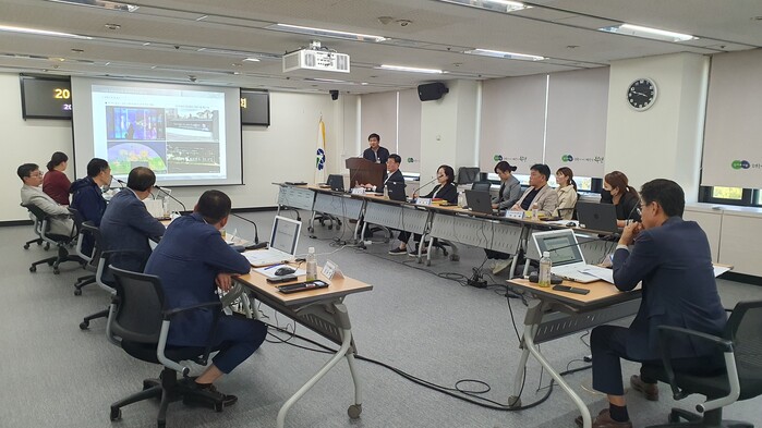 이날 위원회는 윤백진 부구청장 등 공무원 3명과 도시 관련 전문가 7명이 참여한 가운데 김진훈 피투에스지글로벌 연구소장의 발표를 시작으로 위원들의 보도육교 미디어글라스 개선 사업에 대한 자문 및 의견수렴 등이 이어졌다.