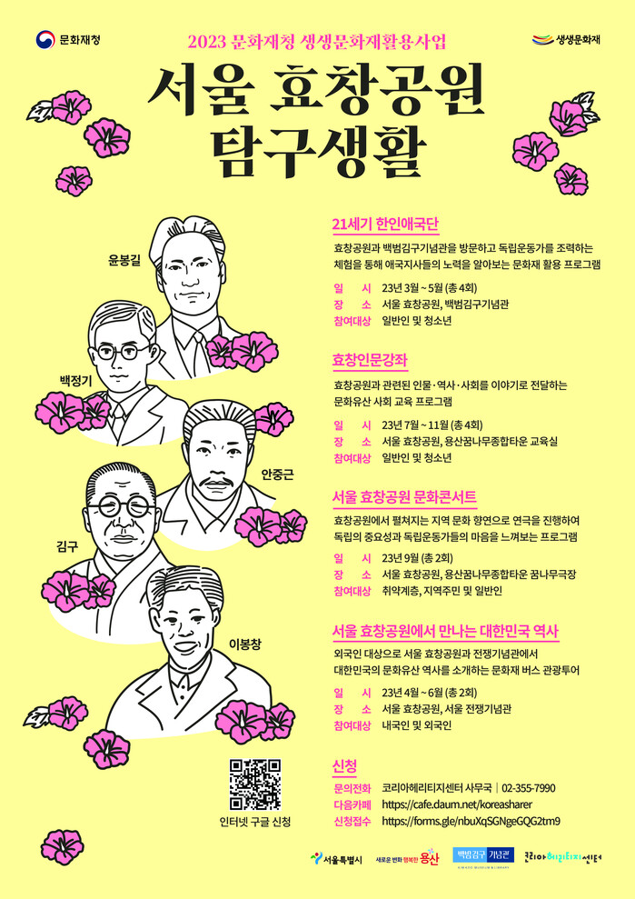 프로그램 참가 신청은 운영처(코리아헤리티지센터) 전화나 구글폼 또는 포스터 QR코드 스캔을 통해 할 수 있다. 참가비는 무료다.