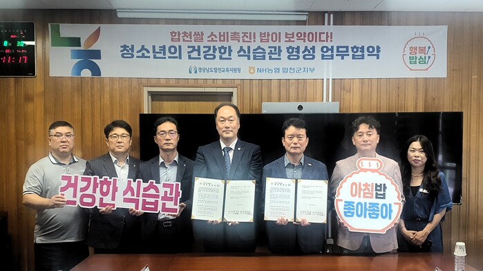 이번 협약을 통해 ▲쌀의 영양학적 가치와 아침밥의 중요성을 알리는 청소년의 건강한 식습관 형성을 위한 활동 ▲합천 쌀 우선 소비를 통한 지역사랑 실천 등에 상호 협력하기로 하고 최근 인구감소와 서구화된 식습관, 쌀에 대한 오해로 쌀 소비가 줄어드는 어려운 실정을 해소하는 데도 힙을 합치기로 했다.