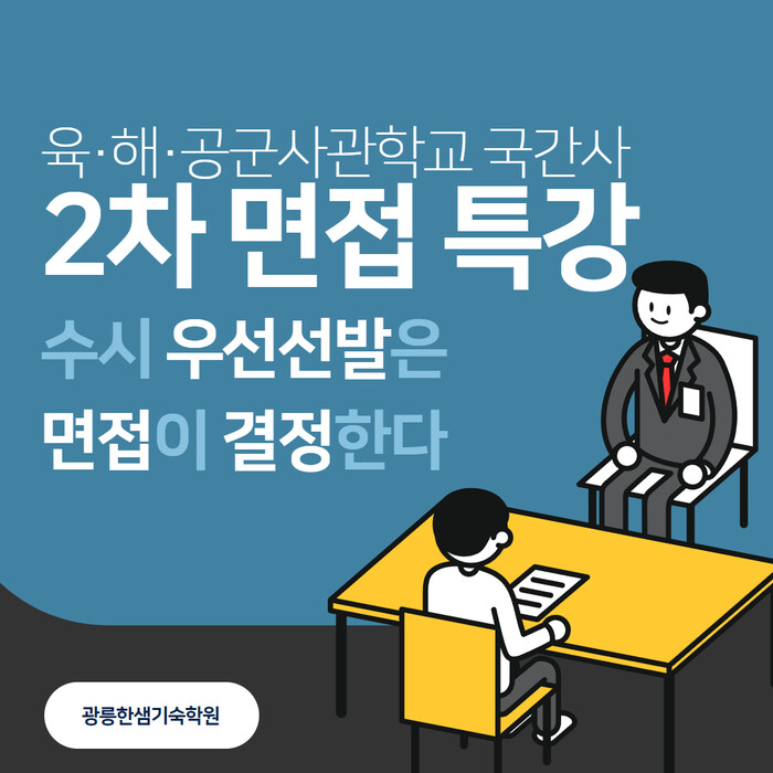 광릉한샘기숙학원 사관학교진학연구소 박일범 소장은 “우선선발 비중이 높고, 2차 시험 변별력이 확대되고 있는 추세를 고려해본다면, 2차 시험에 대한 체계적인 대비는 필수적이다”라며, “특히 올해는 서상록 전 대령을 새롭게 초빙하고 오랜 경험을 갖춘 대성마이맥 인강강사진이 모의면접관으로 투입되어 전문성을 높였기에 사관학교 진성지원자들에게 아주 좋은 효과가 있을 것”이라고 밝혔다.