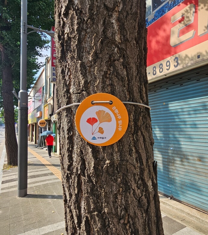 [인천=문찬식 기자] 인천 미추홀구(구청장 이영훈)는 매년 가을철 반복되는 은행나무 열매 낙과로 인한 악취와 불쾌감 민원을 줄이기 위해, 은행나무 암나무에 식별용 표찰을 설치해 가로수 관리의 효율성과 정확성을 높이고 있다고 4일 밝혔다.