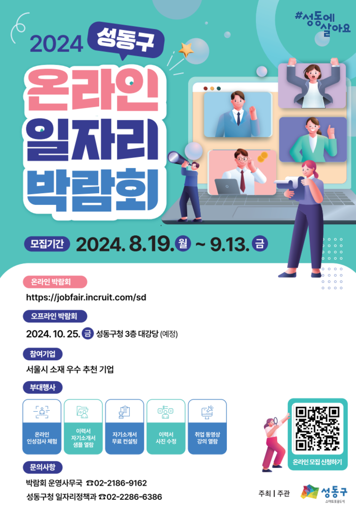 [시민일보 = 이대우 기자] 서울 성동구(구청장 정원오)가 관내 기업의 구인난을 해결하고 구직자에게 양질의 일자리를 제공하기 위하여 ‘온라인 일자리 박람회’를 개최한다.