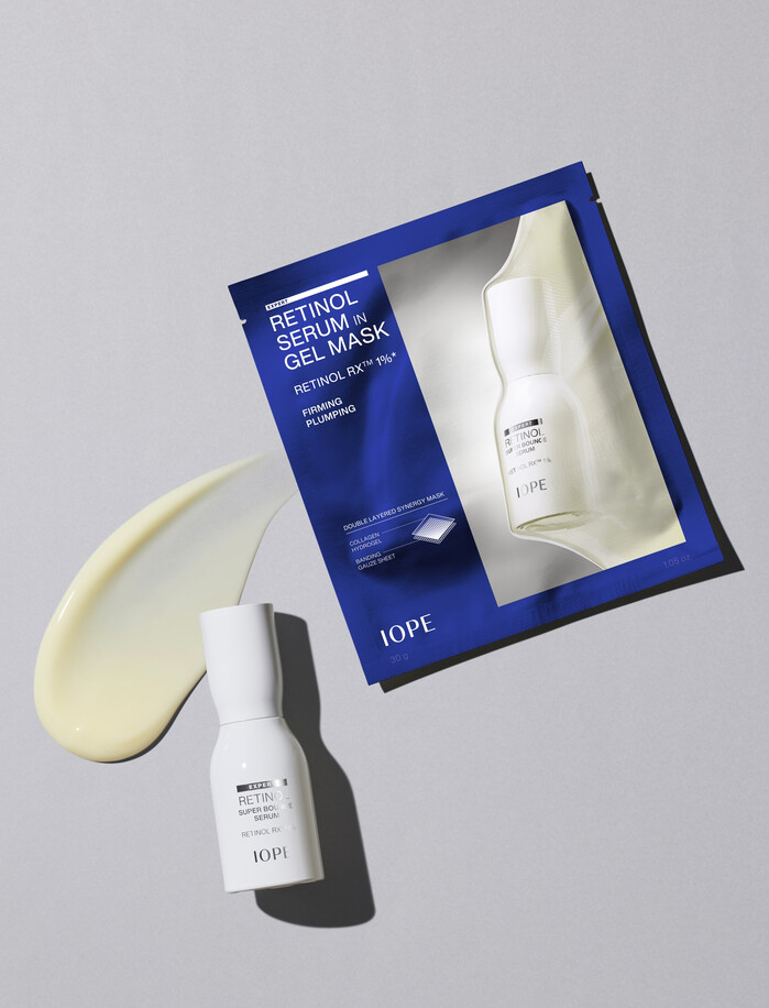 아이오페의 독자 개발 유효 성분인 '레티놀 RX™'를 레티놀 세럼 한 병과 동일하게 고함량으로 함유하고 있으며, 마이크로 에멀젼 기술로 겔 마스크 한 장에 담아냈다.