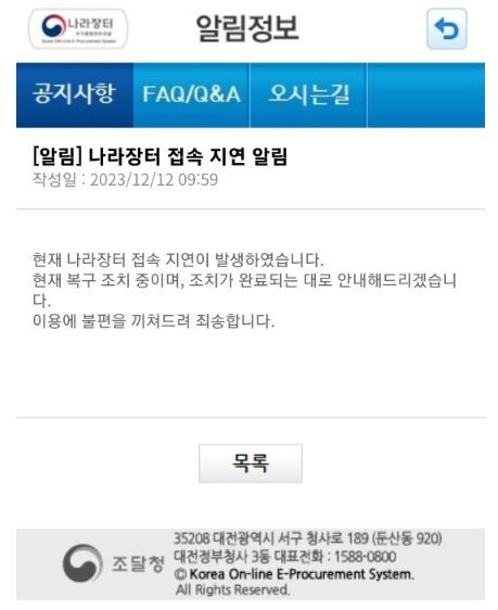 12일 각종 언론을 통해 조달청 나라장터 오류 관련 보도가 이어지며 핫이슈로 급부상 중이다.