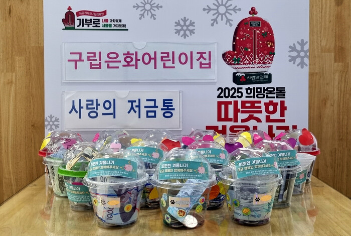 [시민일보 = 이대우 기자] 서대문구 홍은1동(동장 곽태성)은 최근 관내 구립은화어린이집 원아들로부터 ‘2025 희망온돌 따뜻한 겨울나기’ 성금으로 ‘사랑의 저금통’을 기탁받았다고 밝혔다.
