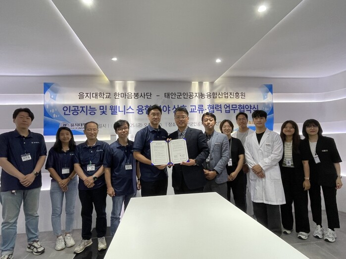 [성남=오왕석 기자] 을지대학교 한마음봉사단(단장 한승진, 이하 봉사단)과 태안군 인공지능융합산업진흥원(원장 유제광, 이하 진흥원)이 지역사회 협력 및 인공지능 및 웰니스 분야 전공 봉사 활성화에 관한 업무협약을 체결했다.