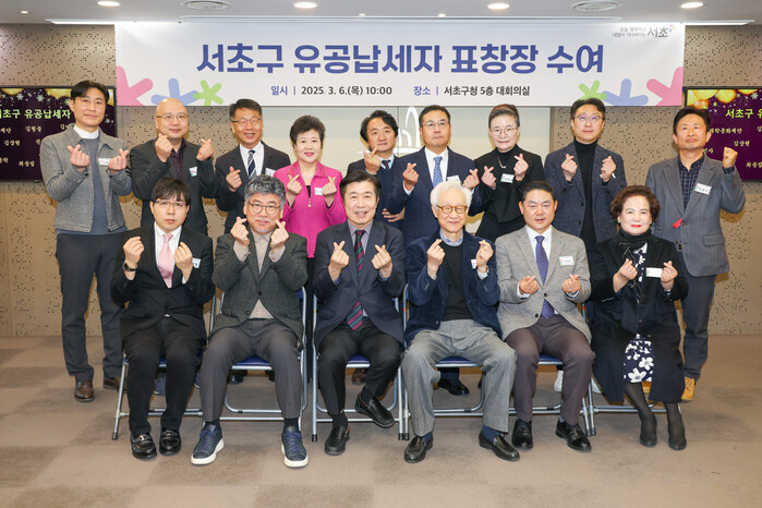 [시민일보 = 박소진 기자] 서초구(구청장 전성수)가 최근 제59회 ‘납세자의 날’을 기념해 구 세입의 안정적인 확보에 기여한 20인을 서초구 유공납세자로 선정하고, 이들에게 표창장을 수여했다고 7일 밝혔다.