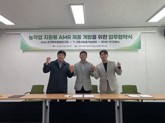 [구미=박병상 기자] 구미시는 지난 10일 구미시농업기술센터, KIRO로봇융합연구원, 디버스와 함께 농작업 지원용 자율주행로봇(AMR) 개발을 위한 업무협약(MOU)을 체결했다. 이번 협약은 급격히 감소하는 농업인구와 고령화로 인한 노동력 부족 문제를 해결하기 위한 방안으로, 자율주행 로봇 기술을 농업 현장에 도입하는 것이 목표다.