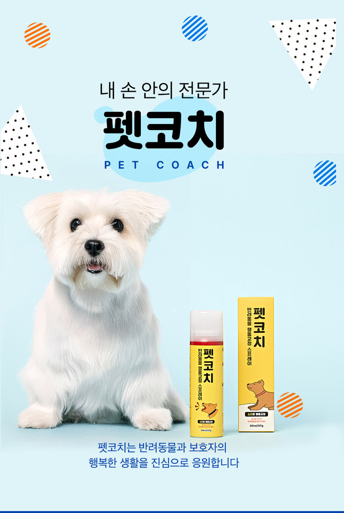 이번에 출시된 펫코치 스프레이는 완전 국산 제품으로, 불연성 소재를 활용해 안전성을 높였다. 반려동물은 물론 사람에게도 해롭지 않은 성분들로만 제조되어 가정 내에서 안심하고 사용할 수 있다는 점이 특징이다.