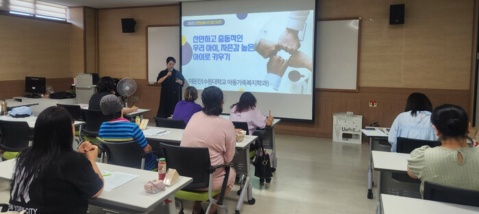 이번 교육은 주의력결핍과잉행동장애(ADHD)의 원인과 증상, 일상생활에서 경험하는 문제점 등을 알아보고, 그에 맞는 아동 지도 방법을 터득함으로써 지혜로운 양육자가 되는 법을 배우기 위해 마련됐다.