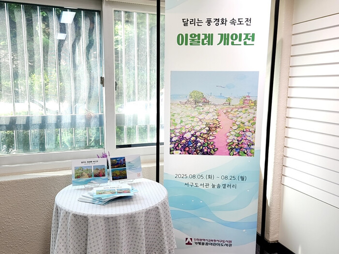 [인천=문찬식 기자] 인천광역시교육청서구도서관(관장 정연순)에서는 8월 5일부터 25일까지 이월례 작가의 개인전 ‘달리는 풍경화 속도전’을 늘봄갤러리에서 운영한다.