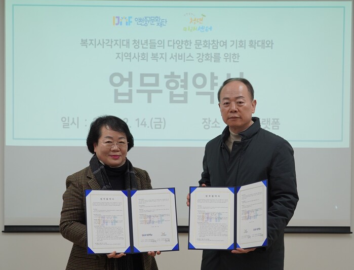 이번 업무협약은 재단의 2025년 ESG 경영 전략에 따른 사회적 역할 강화 차원에서 마련된 것으로, 복지 사각지대에 있는 취약 청년에게 다양한 문화 체험의 기회를 제공하고, 지역사회 복지서비스를 강화하는 데 목적을 뒀다.