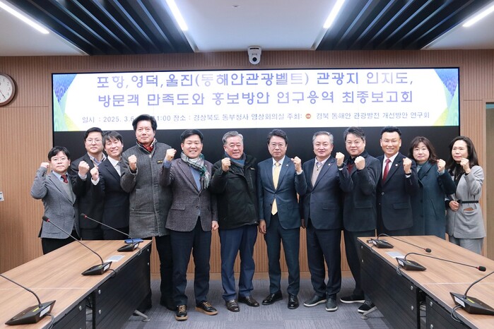 [안동=박병상 기자] 경북도의회 「경북 동해안 관광발전 개선방안 연구회」(대표 연규식 의원)는 지난 6일(목) 11시, 환동해지역본부 회의실에서 ‘포항·영덕·울진(동해안관광벨트) 관광지 인지도, 방문객 만족도 및 홍보방안 연구용역’ 최종보고회를 개최했다.