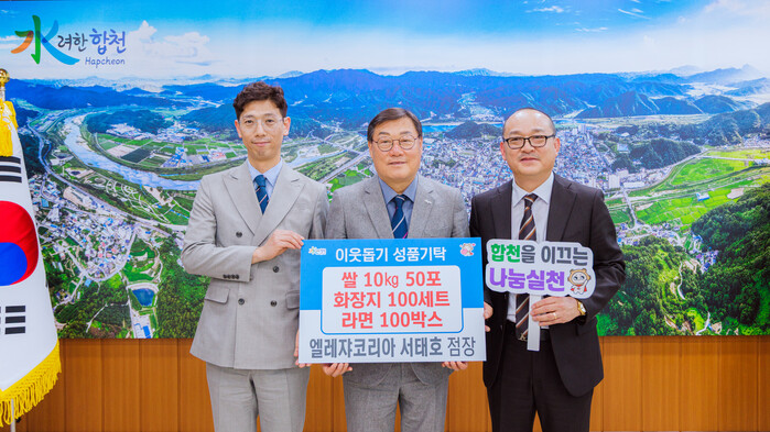 김윤철 합천군수는 “어려운 이웃을 위한 따뜻한 나눔을 실천해주셔서 감사드린다”며 “기탁해주신 성품은 도움이 필요한 이웃에게 소중히 전달하겠다”고 밝혔다.