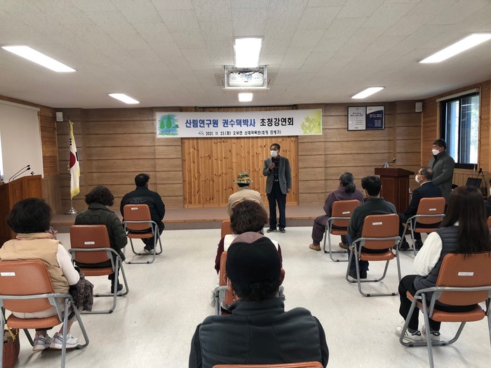 이순선 오부면장은 “우리 지역 임업인을 위해 재능기부에 나서 주신 권수덕 박사님께 감사드린다”며 “앞으로 우리 지역 특성에 맞는 임업 육성을 위해 노력하겠다”고 말했다.