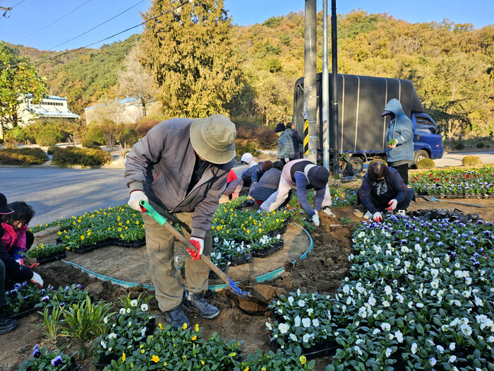 이번 정비는 양사면 진입 첫 관문인 소고개삼거리 화단에 내한성이 강한 겨울 팬지 식재를 통해 겨울철에도 많은 주민들에게 아름다운 볼거리를 제공하고자 추진됐다.