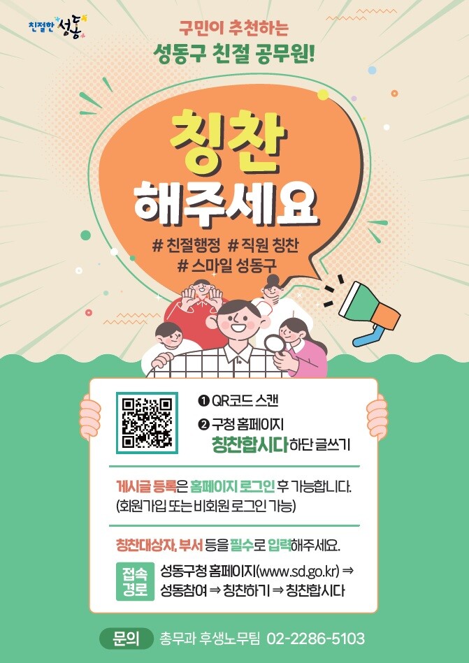 | ▲ 구민이 추천하는 성동구 친절 공무원 칭찬 홍보 포스터. (사진=성동구청 제공) |