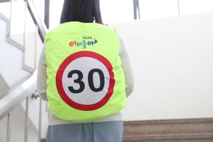 또 가방 안전 덮개에는 교육 영상을 담은 큐아르(QR‧정보 무의) 코드를 새겨 넣었다. 교육 영상은 △올바른 착용 방법 △어린이 교통사고 예방 △교통사고 발생 현황 등 어린이의 눈높이에서 누구나 알기 쉽도록 구성했다. 교육 영상을 본 학생과 학부모가 가방 안전 덮개를 착용할 필요성을 인식하고 착용률을 높이는 계기가 될 것으로 기대한다. 관련 영상은 유튜브 채널 ‘경남교육’에서도 찾아볼 수 있다.