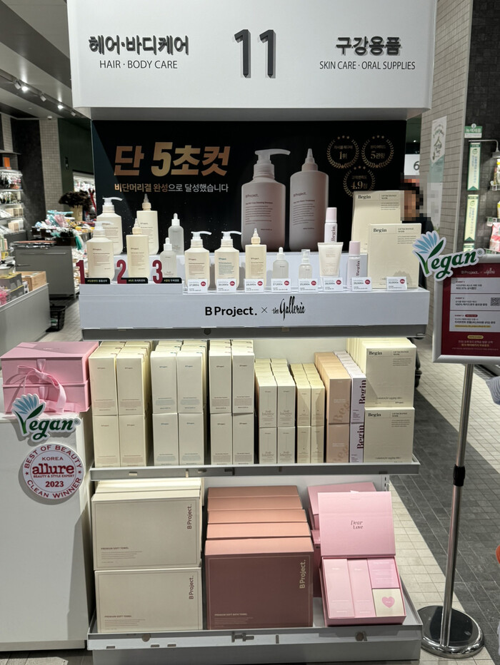 올리브인터내셔널 비건 뷰티 브랜드 비프로젝트가 갤러리아 광교점에서 팝업 행사를 진행한다.