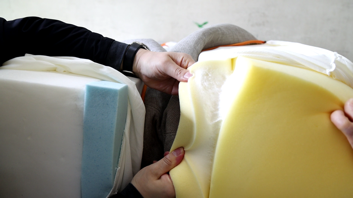위조 매트리스 현 품 을 확인한 결과, 커버는 정품 과 구별이 어렵지만, 내품 은 일반 스펀지와 메모리 폼을 붙인 2겹 구성으로 정품 과는 확연한 차이가 있었다.
