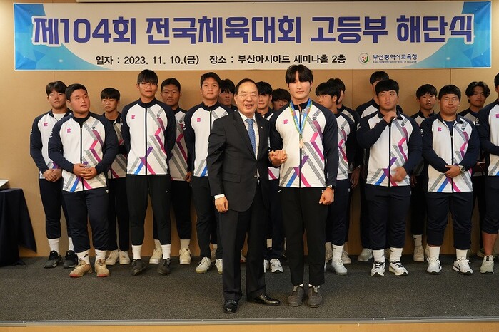 하윤수 교육감은 제104회 전국체육대회 고등부 결과 보고를 받고, 우수 학생 선수(팀)와 지도자, 우수학교에 격려금과 특별훈련비를 수여 했다.