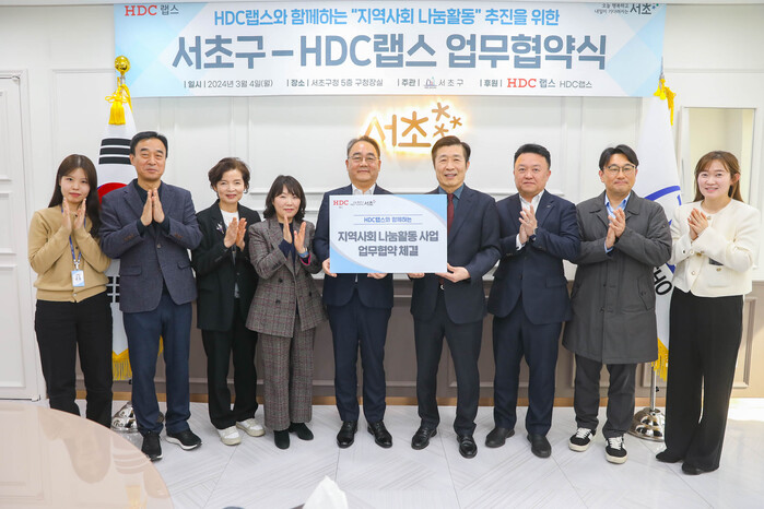 이날 구청에서 열린 이번 협약식에는 전성수 구청장과 HDC랩스 김성은 대표를 비롯한 관계자들이 참석해 ‘지역사회 나눔활동’의 항후 추진 계획을 공유, 협약서를 교환하고 기념 촬영을 진행했다.