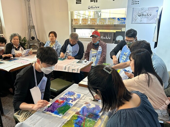 어르신들은 BPA 직원들과 함께 폐현수막 캔버스 위에 붓과 물감으로 바다 풍경 등을 그리면서 숨은 재능과 솜씨를 뽐내며 즐거운 시간을 보냈다.