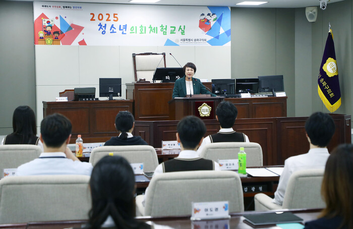 [시민일보 = 이대우 기자] 서울 송파구의회(의장 이혜숙)가 최근 오후 2시 송파구의회 4층 본회의장에서 잠일고등학교 1~2학년 학생 22명을 대상으로 2025년 청소년의회체험교실을 개최했다.