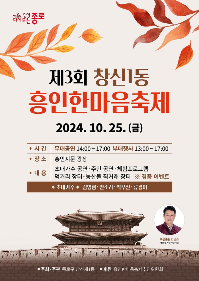 25일 14시에는 흥인지문 광장에서 「제3회 창신1동 흥인한마음축제」를 진행한다.