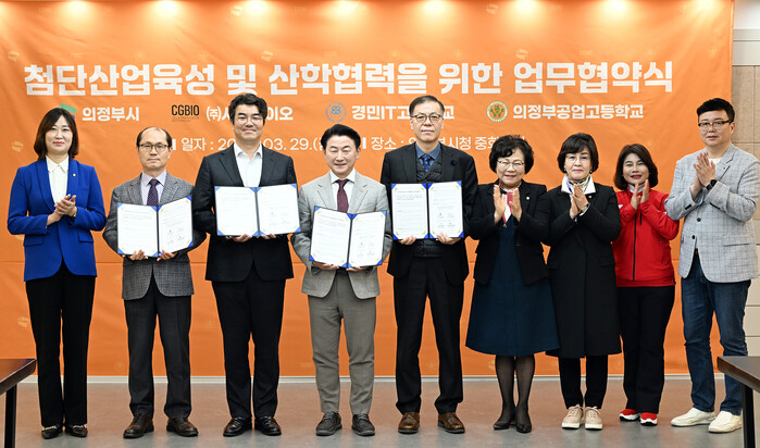 [시민일보 = 민장홍 기자] 경기 의정부시의회가 최근 의정부시청 중회의실에서 진행된 ‘의정부시-(주)시지바이오-경민IT고-의정부공업고 첨단산업육성 및 산학협력을 위한 업무협약식’에 참석했다.